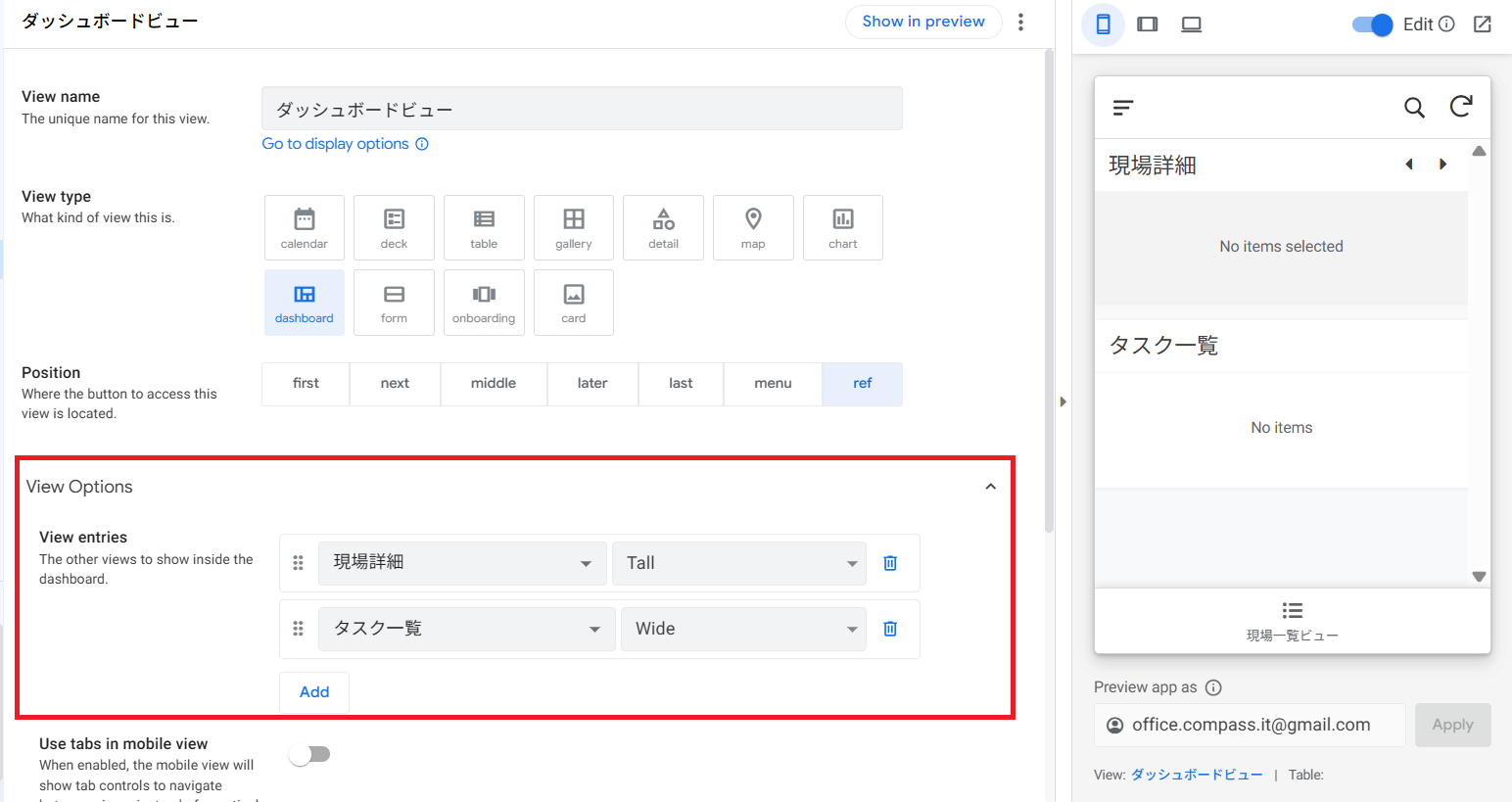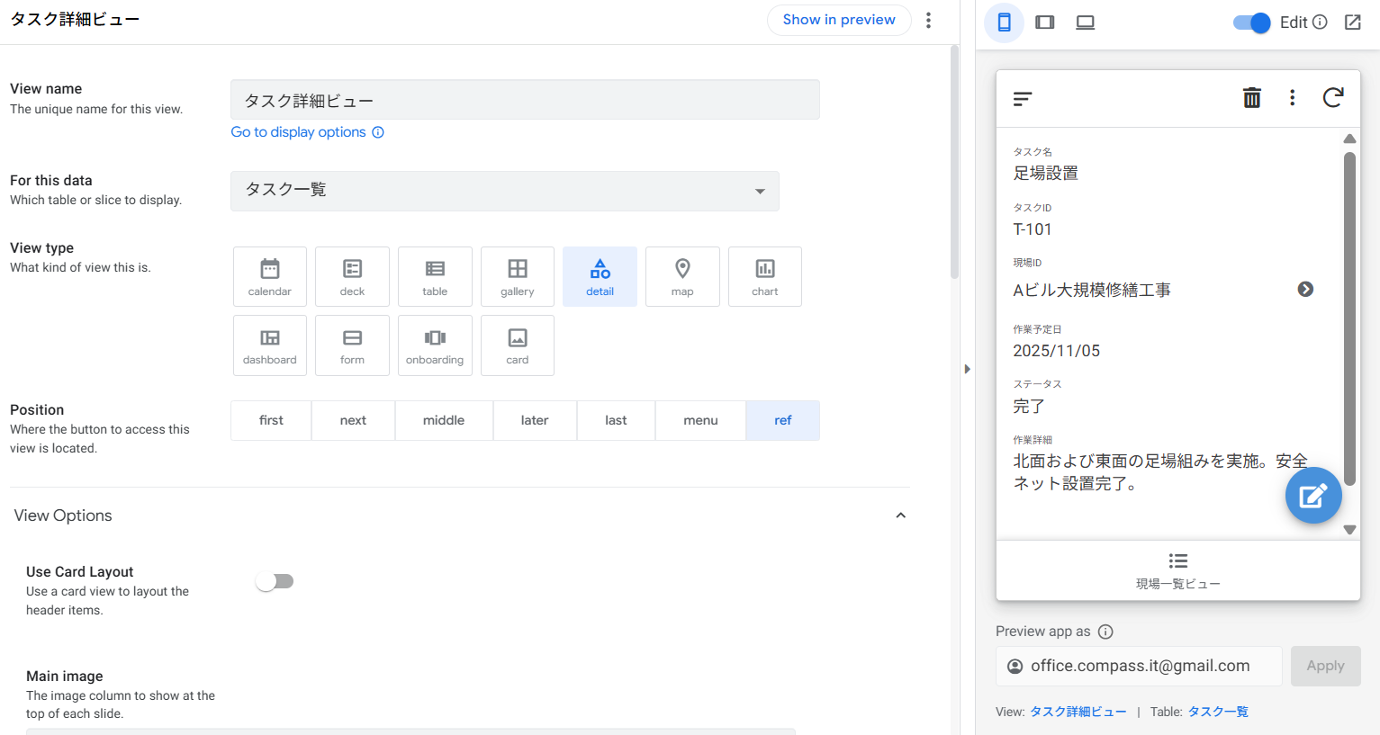 ダッシュボード(現場詳細+タスク一覧)ビュー