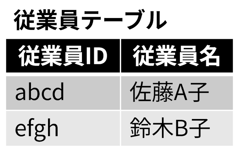 そこで、以下のように従業員を管理する専用テーブルを作成します。